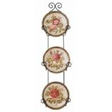 , Fill a narrow vertical space with these elegant floral poly/resin plates and display rack. Bright flowers and bold trellis borders create a vibrant garden landscape for your wall. Approximately 6" (15.25cm) diameter. (Read More)