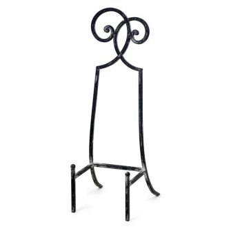 Imax , Large metal schaffner easel designed by Carolyn Kinder features elegant curl design at top.
