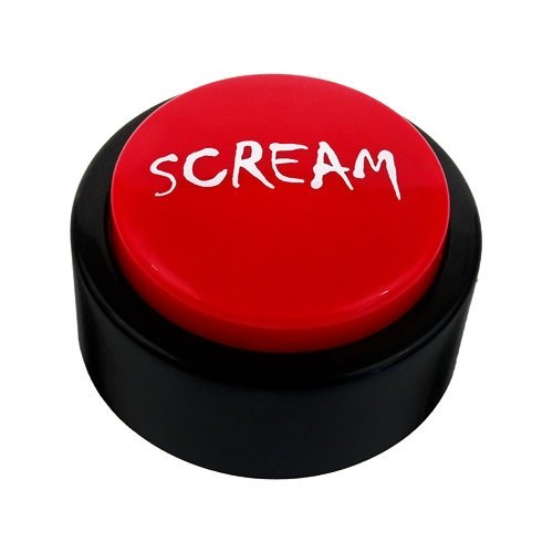 Scream Button, Are you suffering from too much stress? Express your emotions (and get noticed) with a push of the Scream Button. The bone-chilling scream is ideal in most panic-stricken situations, including an intergalactic meltdown, a downward economy, or paying full